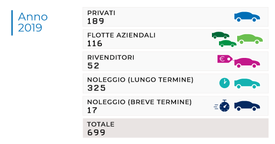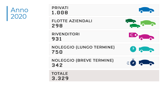 Per quanto riguarda i segmenti di mercato, continua la crescita del privato rispetto alle flotte (+517% vs +203%), mentre il segmento che raccoglie le migliori performance del mese è il Rentals short term (+2191%).